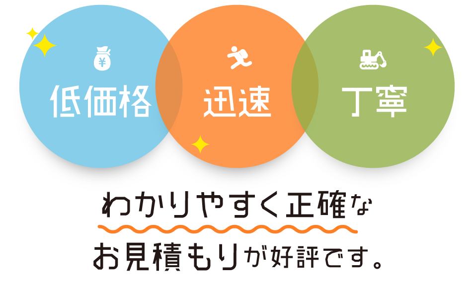 営業用や誇大広告など見せかけの価格案内は一切行いません。理由ありきの低価格に自信があります。厳密な現地調査を行った後適正価格をご案内し、追加料金のご請求などはいたしませんのでご安心ください。