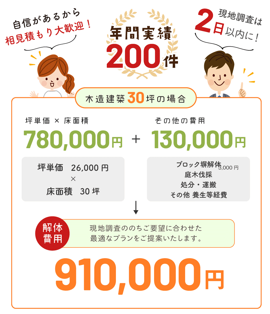 一般住宅を専門にしているため、申請書類の作成及び提出や、近隣への対応、解体業務から処分まで業務フローをシステム化し、自社スタッフを徹底的に教育しているため、必要な業務を迅速に処理することが可能です。