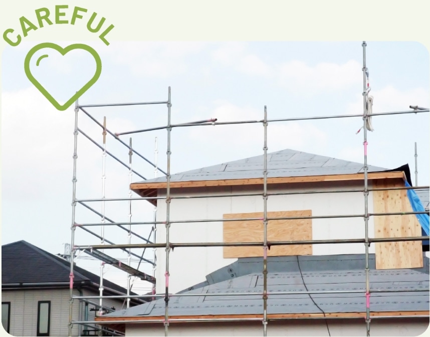 お客様のご要望を最大限に尊重した迅速な対応でご評価いただいております。 現地調査やお見積もり対応はもちろん、施工や近隣対応なども、一般住宅専門ならではのスキルと経験を最大限に生かして、責任を持って迅速に遂行しスピーディな対応でお客様への誠意を示します。